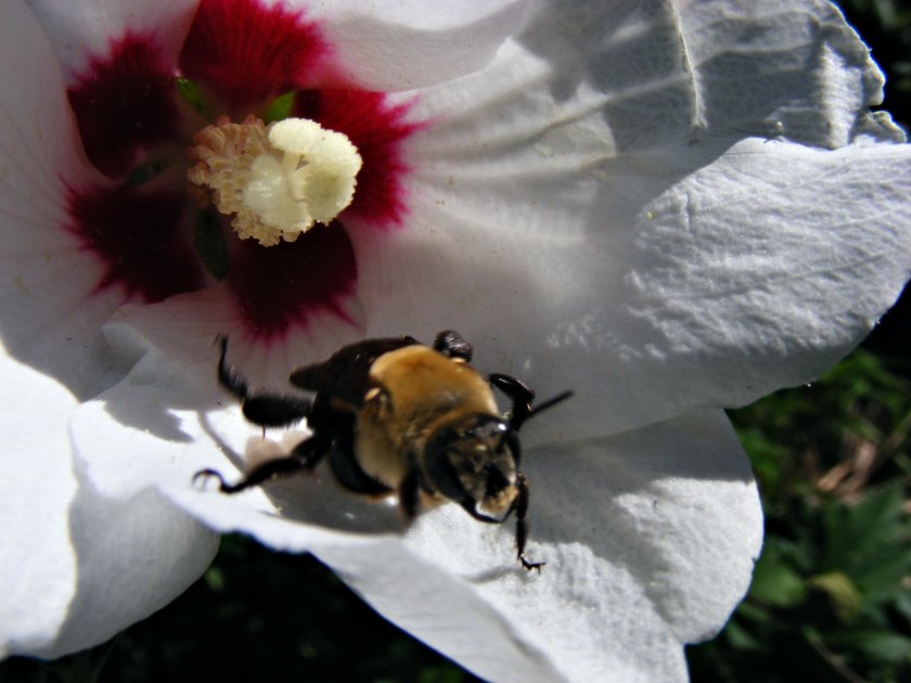 As I was taking this photo of Rose of Sharon I got a little surprise!