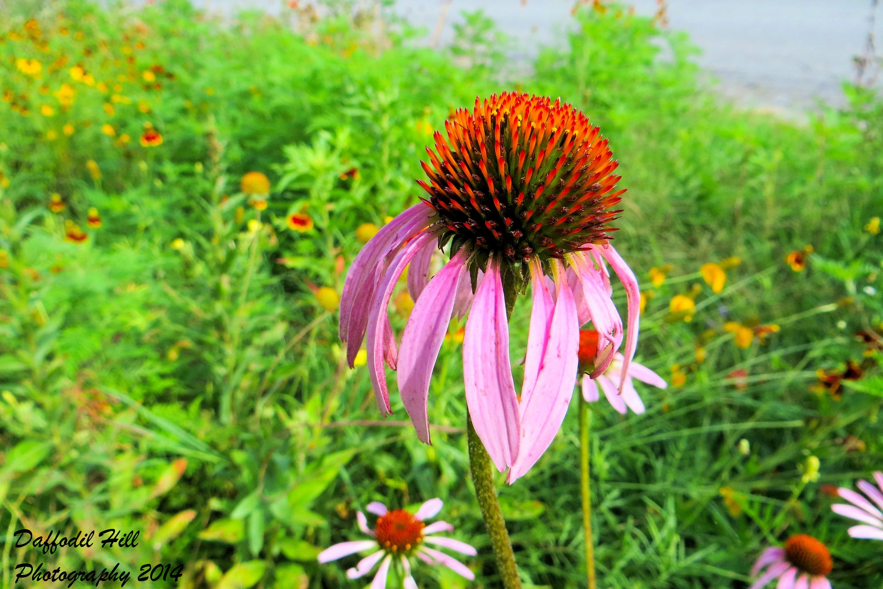 There is a strip of grass that butts up to the beginning of a few blocks of low-income and government supported housing. Though it is a busy street, and maybe to some a semi-scary street, a local business owner thought that small strip was worthy of a garden. If one looked at it a glance one would think it was a stray garden but in fact it is an act of love. Here are several shots of some Eastern Purple Coneflowers that reside in the stray garden on the way.