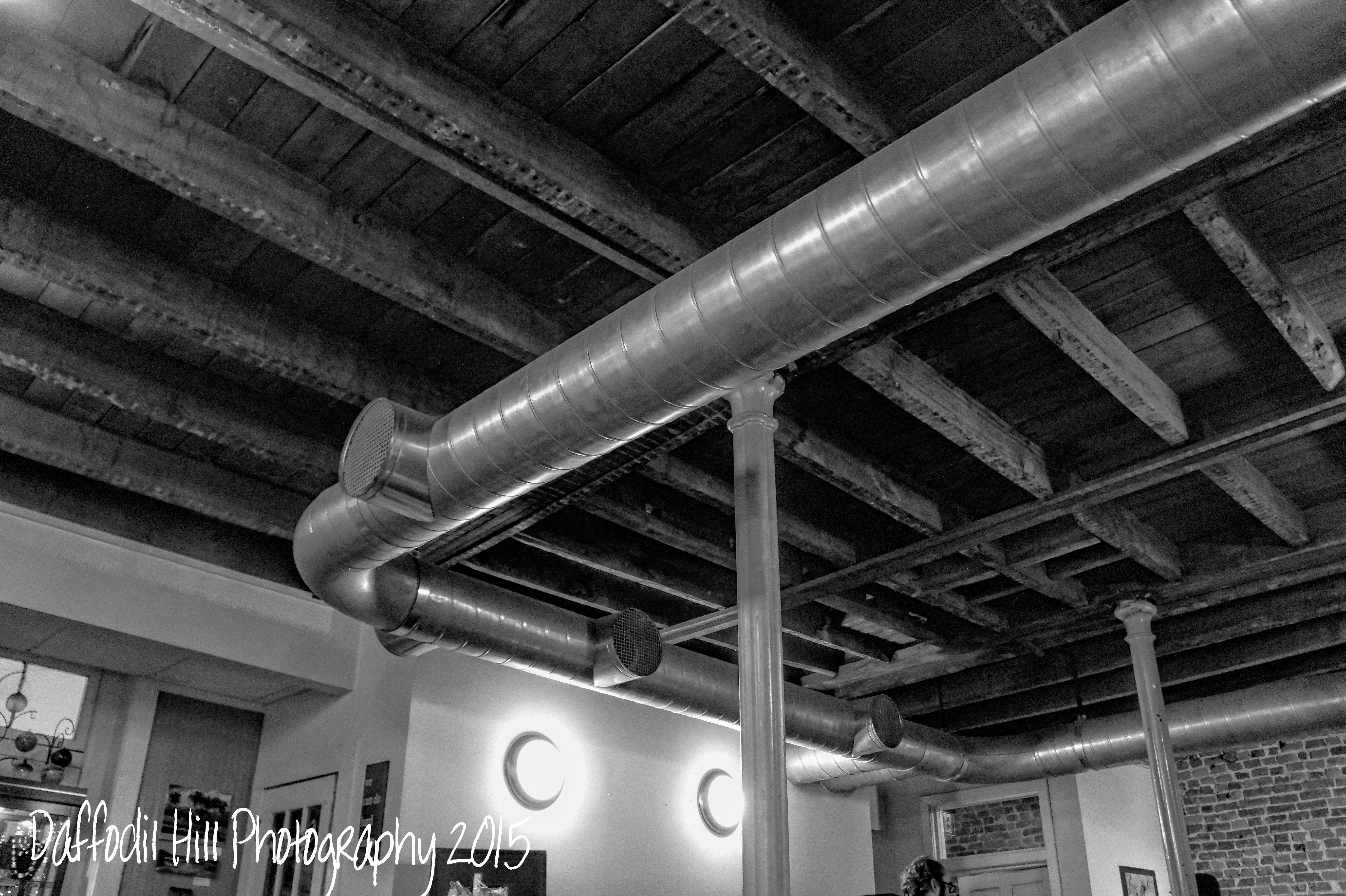 Ed over at Thoughts From The Road does a piece called Sunday Still. I say today’s post and knew I had a picture the I wanted to share. I took it sometime back but could not find the time to post it. Well I found it tonight. The wood above the modern duct work is over a hundred years old and support the second floor of the building. It is said to contain the ghosts of two civil war soldiers who housed there as prisoners and were killed by mortar fire.