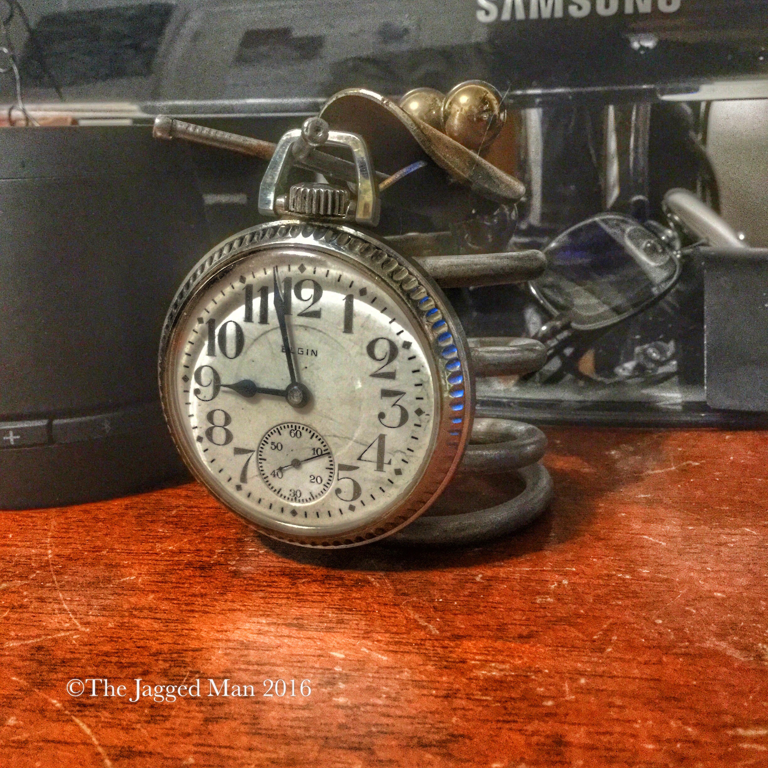 Watches have been a part of my life for a very long long time. I have worn a wrist watch more on than off for most of my adult life. My Pop’s passed on his love of pocket watches to me. I very rarely carry one because of my ability to get the chain caught on chairs, in seatbelts, etc. I bought this one for my desktop and so far I have not caught on anything but the figurine I purposely hung it on. Taken with iPod Touch and edited in #snapseed #photogene4.