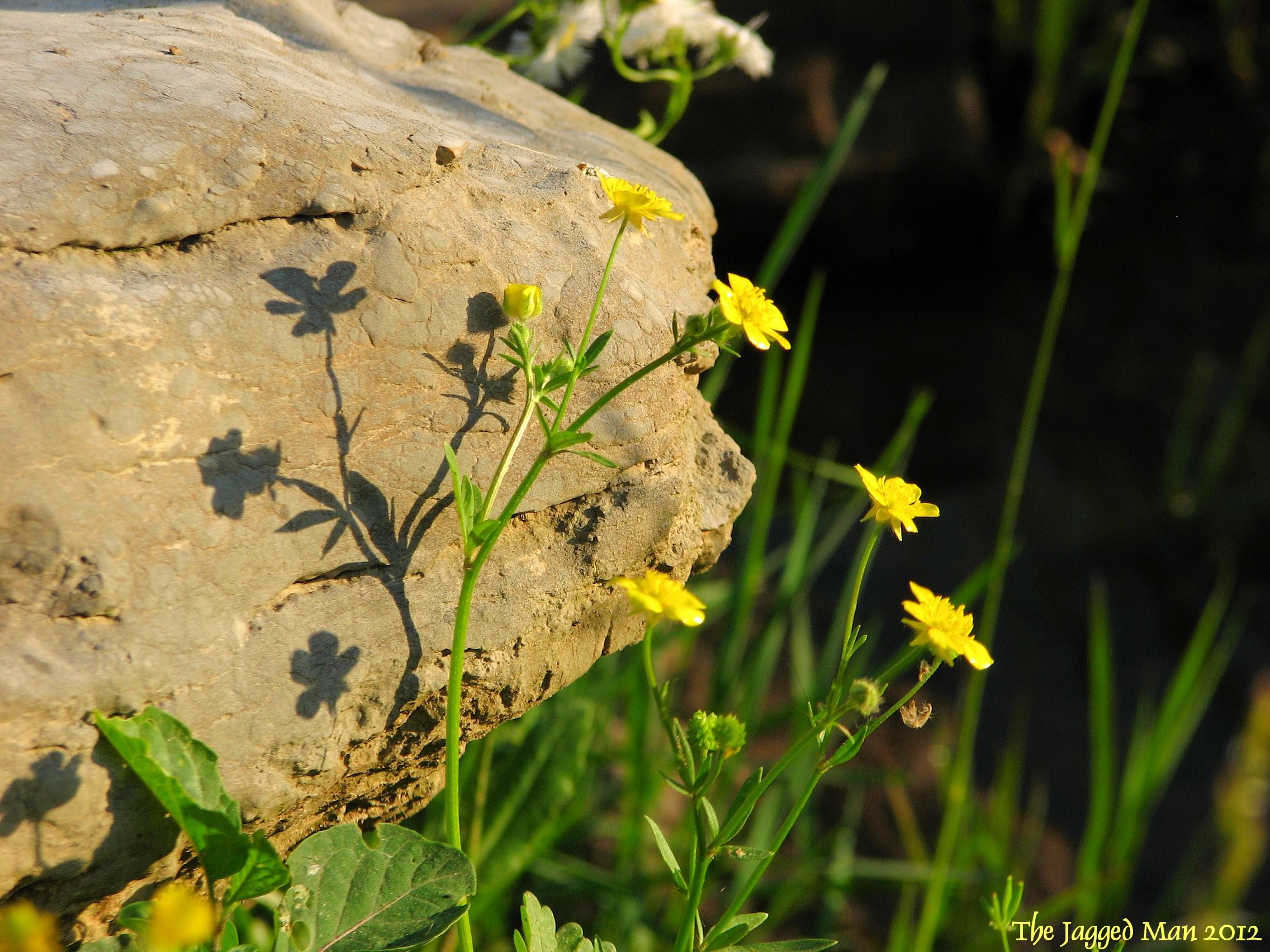 You see three separate pictures within this picture if you really look for them: The pretty yellow flowers, the ginormous rock and the shadows gracing said rocks’ side. It takes all three to make the picture but each element can be a subject in and of itself. Maybe that is how real haiku writers see the world. I have no haiku for you but feel free to add your own!