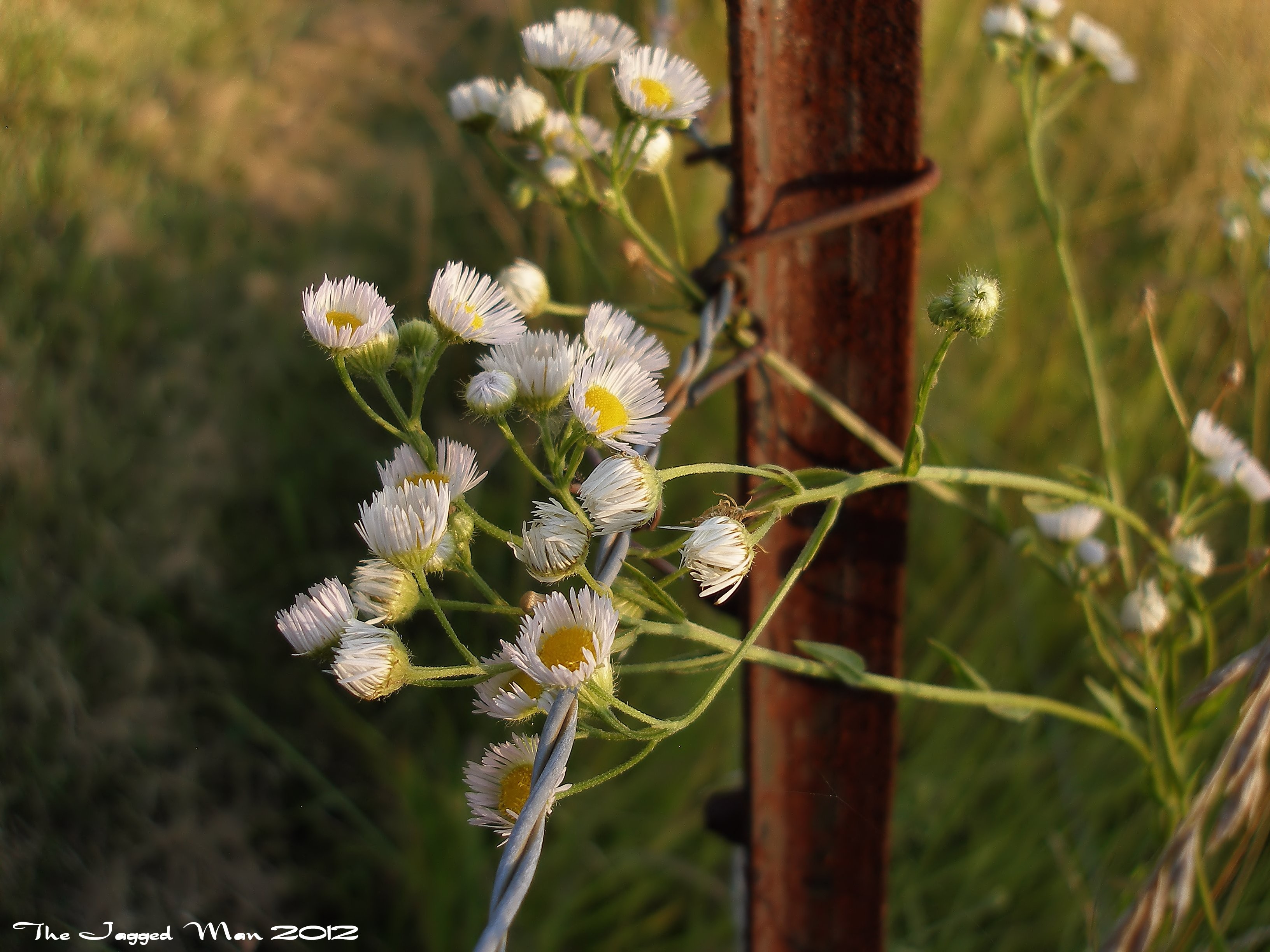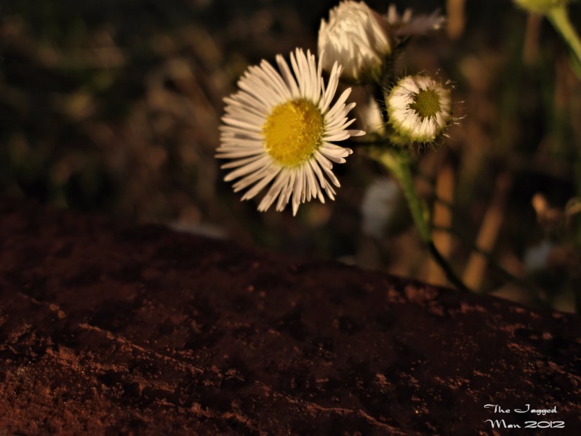 As the last of the days rays retreat into the horizon I take a walkabout our place. I am in search of the doe that I believe beds down somewhere on our place. I get near the creek that runs across the back side of our place and the light is fading but the bugs are not! I head back in and find these little daisies readying for bed on my way back.