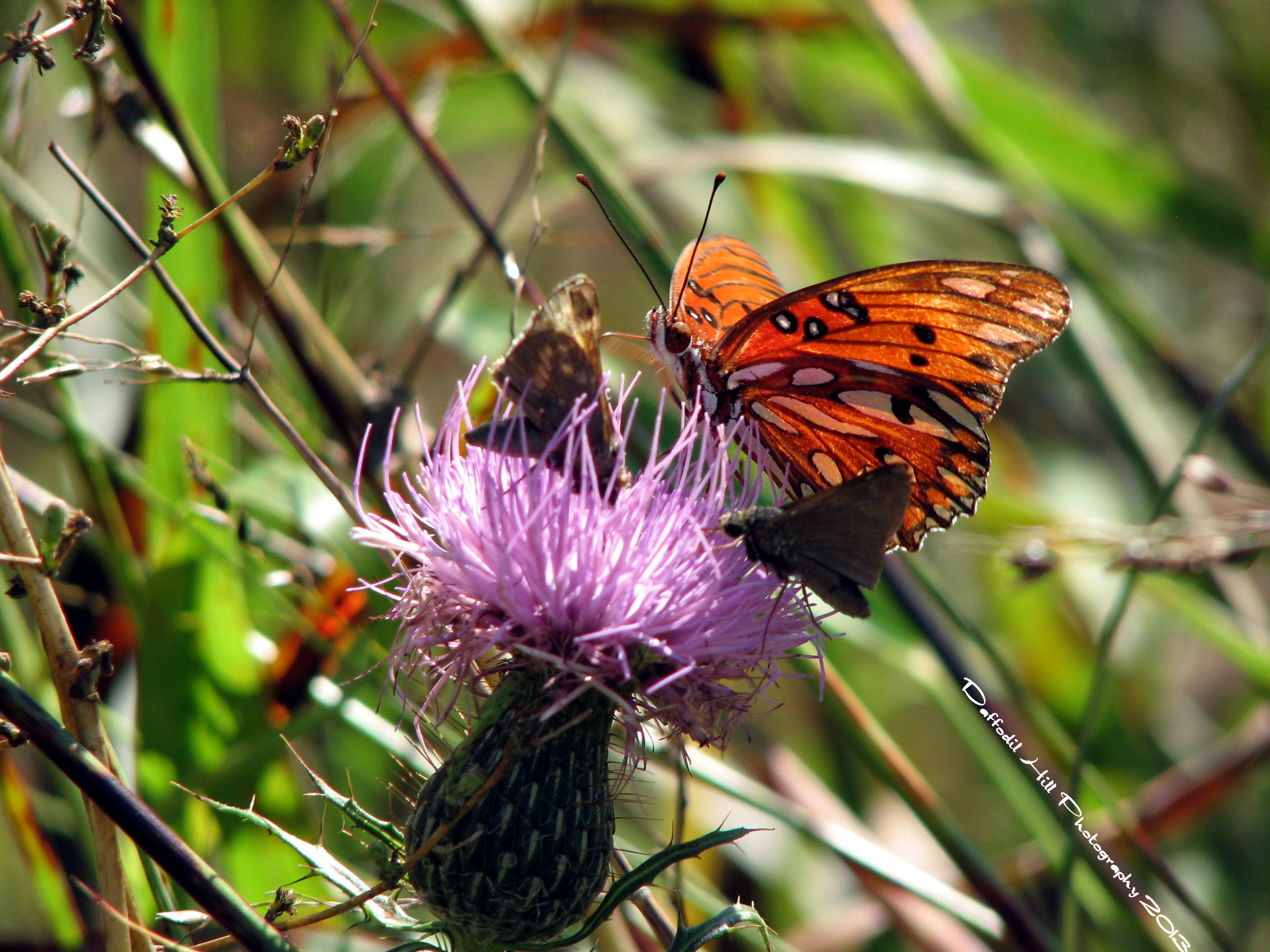 Once again I have hit a dry spell of new captures. This time it is due to the season opening play at our local Playhouse. Our playhouse rocks, and after a rocky season for The Bride and I, it was good to see a great start to a potentially great season. As many legs were broken on stage and the night…uh, early morning arrived , I had to once again dip into the way-back-files. Here is a capture of several pollinators getting topped off for the road. Welcome to the thistle stop filling station!