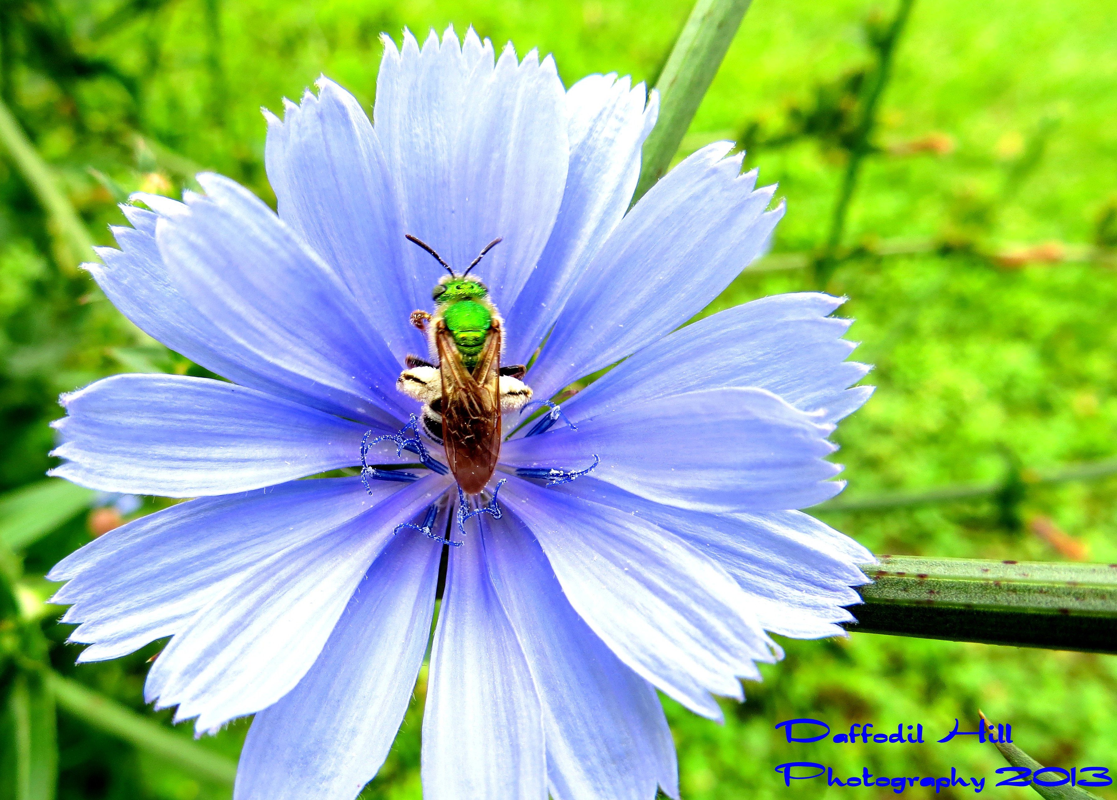 A sweat bee coming in for a landing on a Fleabane.